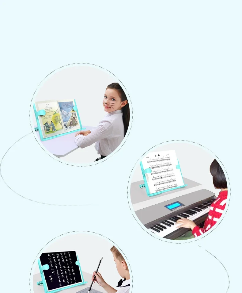 1 Многофункциональная подставка для чтения книг, подходит для книг, мобильных телефонов, подушек, пианино, рецептов, помогает исправить положение сидя и ухаживать за шейным позвоночником 2 гуманизированный дизайн, регулируемый угол чтения, Нескользящая силиконовая накладка, простой в использовании держатель для книг, легко носить с собой. 3. Желоб регулирует расстояние зажима, подходит для книг разных размеров. 4 силиконовые скобы помогают защитить экраны книг и электронных устройств. 5 Abs толстый материал, износостойкий и анти-капля 6 маленьких размеров, легко носить с собой, подходит для взрослых и детей. Его можно использовать в качестве подставки для чтения, подставки для рецептов, музыкального стенда, каллиграфии и подставки для рисования и подставки для подушек.