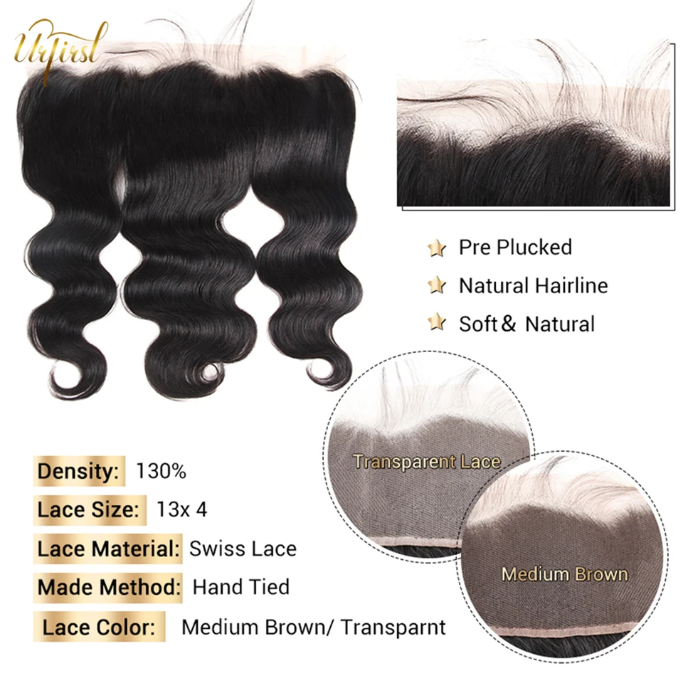 URFIRST, прозрачные, кружевные, фронтальные, с пряди волос, бразильские, волнистые, пряди волос с фронтальной пряди человеческих волос для черных женщин