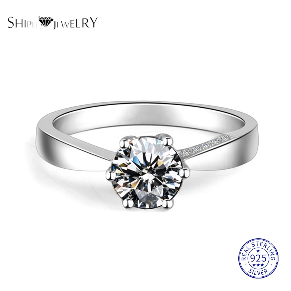 Женское кольцо с белым сапфиром Shipei, ювелирное изделие из 100% стерлингового серебра 925 пробы, Подарок на годовщину, размер 6-9
