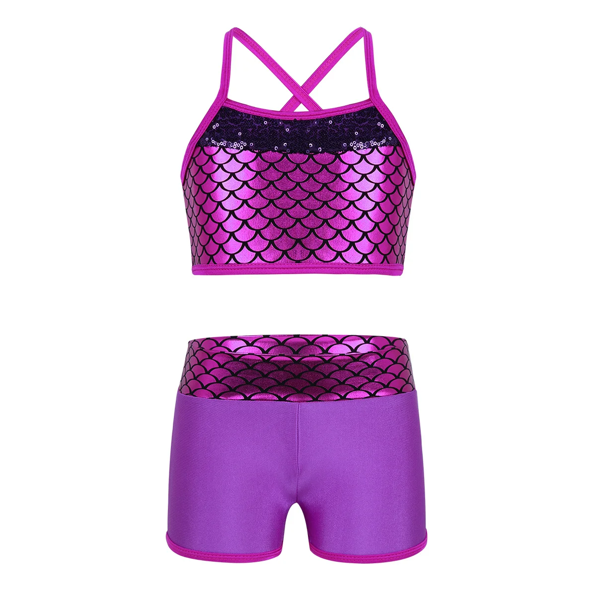Бретельки на бретельках перекрещиваются сзади, топ на бретельках спереди украшен пайетками, принт с чешуей.