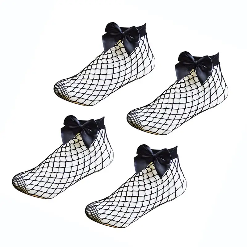 3 пары женских ажурных носков по щиколотку, ажурные однотонные ажурные чулки до щиколотки с бантом (черный)