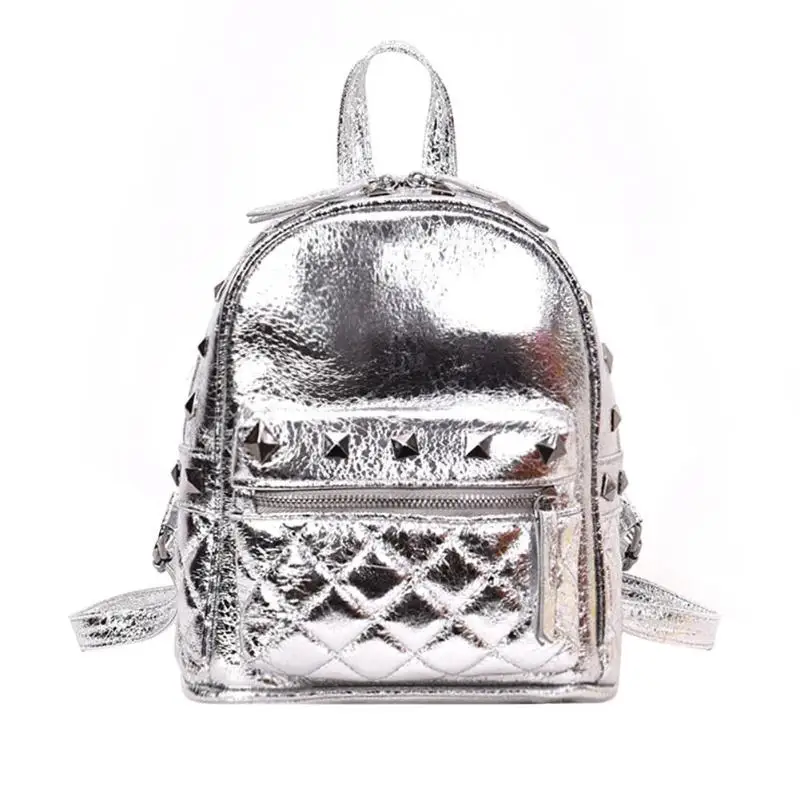 Уличные женские сумки на плечо из искусственной кожи с блестящими заклепками; мини-сумки на молнии для девочекПовседневная одеждаШкольные рюкзаки