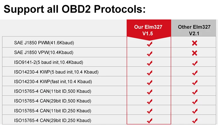 A1: It's 100% v1.5 from both software and hardware, with full OBD2 Protocols, including commands ATAL and ATTPS commands.