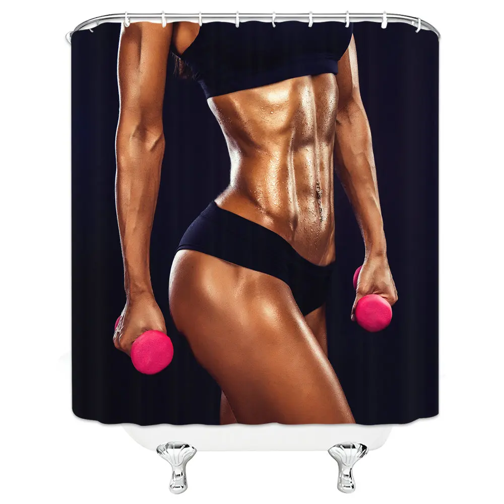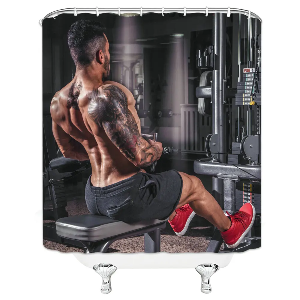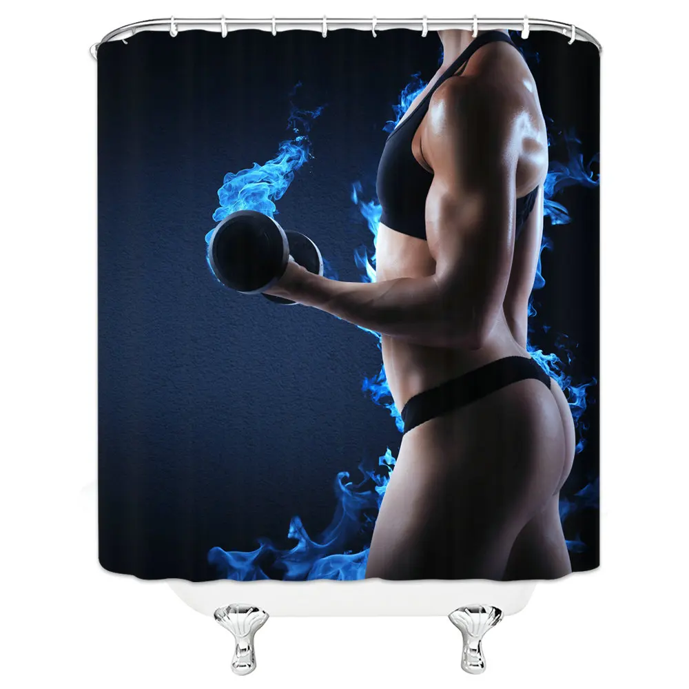 Фитнес Спорт Душ занавес водонепроницаемый ванная комната полиэстер ткань модный дизайн украшение дома с крючками
