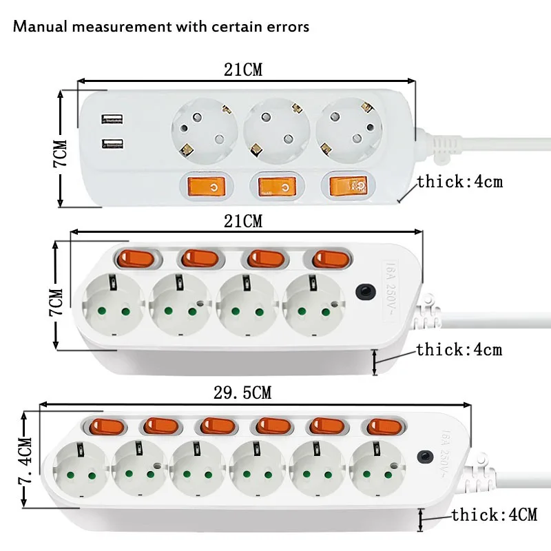 Порты: 3EU розетка + 3USB порты