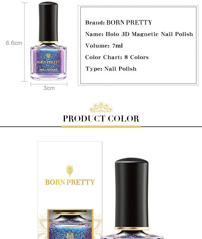 1 бутылка 7 мл BORN PRETTY Магнитный кошачий лак для ногтей