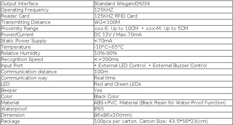 • Диапазон считывания до 10 см для RFID карты и 5 см для карты Mifare