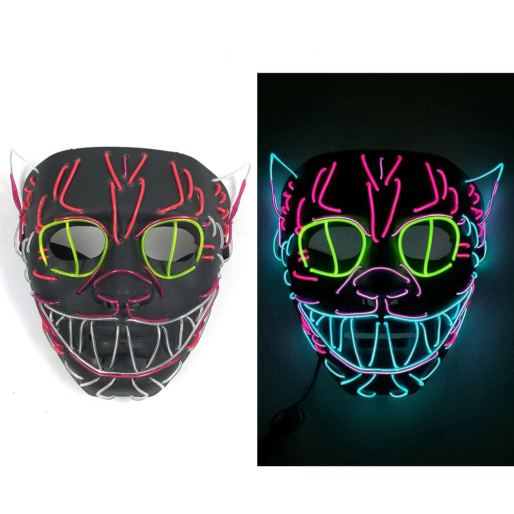 Маска для Хэллоуина, светящаяся маска для кошки со светодиодной подсветкой, костюм, анонимированная маска для светящейся танцевальной маски для карнавала вечеринки, украшения на Хэллоуин