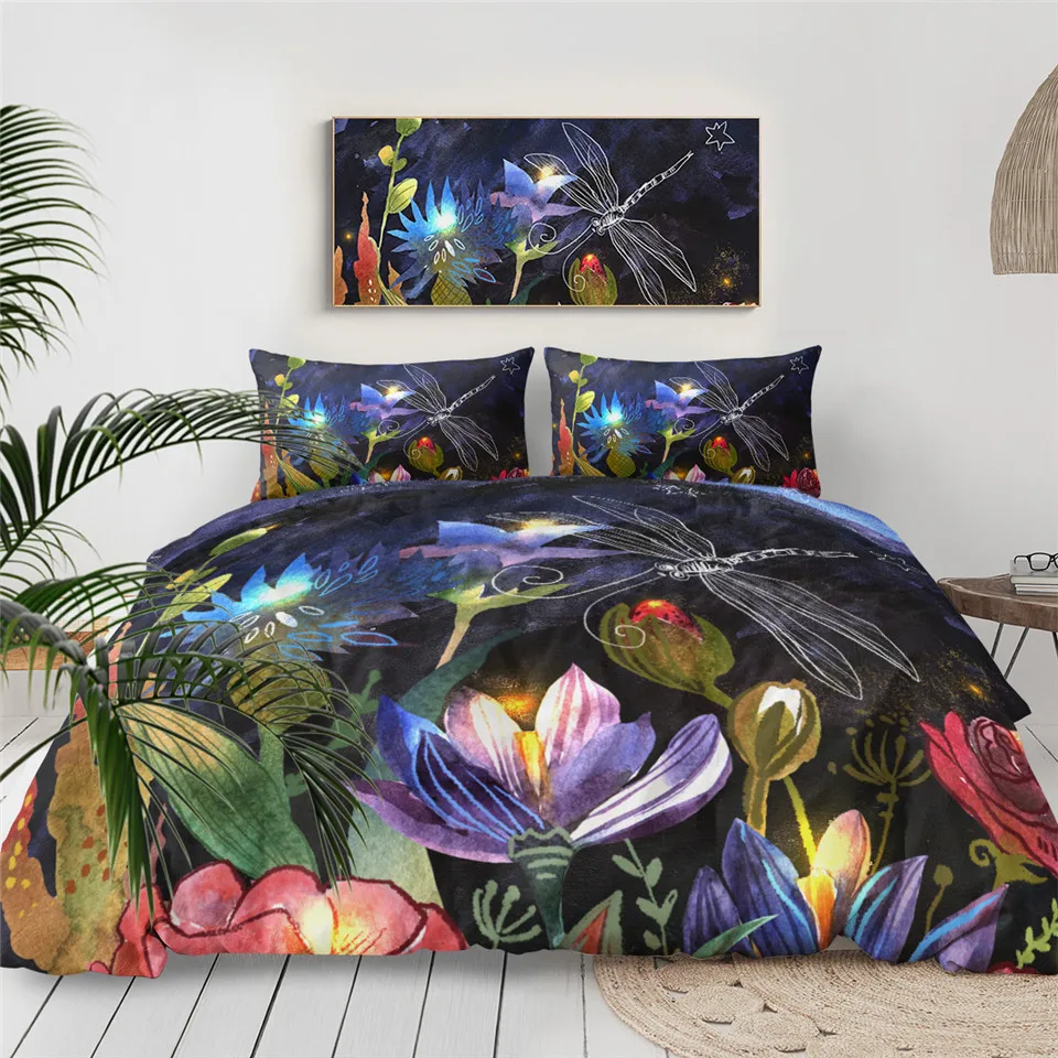 Название товара:Комплект постельного бельяУпаковочный лист:1 * пододеяльник + 2 * наволочкиТкань:Салфетка из микрофибрыСезон:Весна, лето, осень, зимаОсобенности:Ярко светящаяся розовая стрекоза с переливающимися фиолетовыми крыльями, ярко выделяется на основном темном фоне черного цвета с синей мандалой.Рекомендации по уходу за постельным бельем:1) Если для сочетания Вам дополнительно требуется простынь, пожалуйста, свяжитесь с нами.