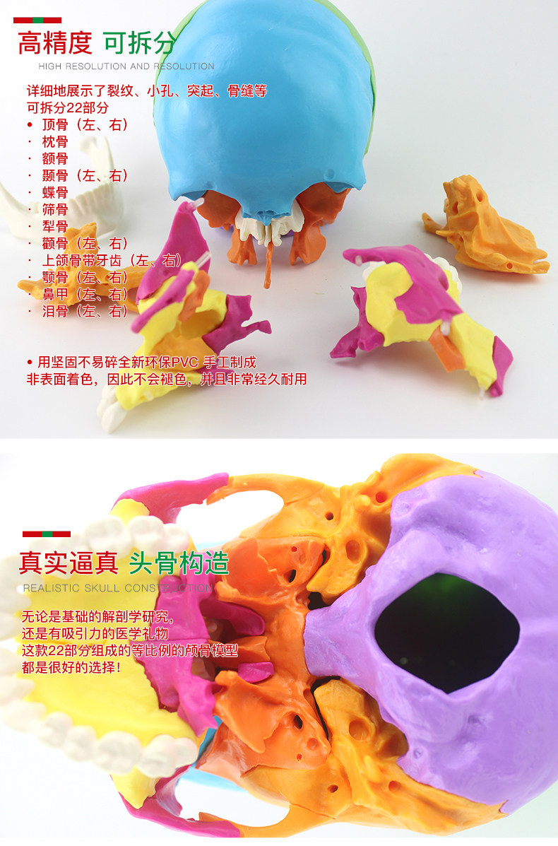 1:1 Размер жизни медицинские люди череп модель микро пластическая хирургия Стоматологическая головка Съемная 22 части с руководство на английском языке