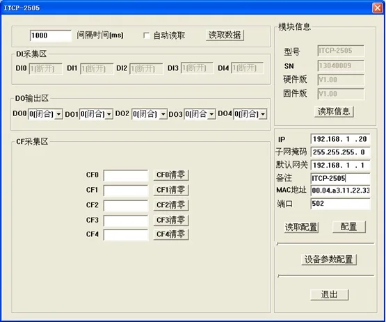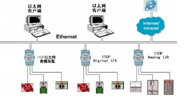 2. Характеристики продукта* Процессор: 32 бит RISC ARMОперационная система: Операционная система в реальном времениНапряжение источника питания: + 10 ~ + 30 В постоянного тока, защита обратного источника питания.Диапазон рабочих температур: -20 C ~ + 85 CПластиковый чехол промышленного класса, стандартная установка направляющей DINИнтерфейс связи: изоляция 2500 В постоянного тока, ESD, перенапряжение и защита от перегрузки по току. Цифровой входВход путь: 8 способ изоляцииТип входного сигнала: переключатель контактного сигнала или сигнал уровня.Вход Область применения:Высокий уровень (цифровой 1): + 4,0 V ~ + 30VНизкий уровень (цифровой 0): менее + 1 вЭлектронные сигареты с цифровым выходомВыходной путь: 8 маршрутаТип выхода: коллектор с открытым дренажным выходомМаксимальное напряжение нагрузки: 50 вМаксимальный ток нагрузки: 50 мА 3. Пример установки оборудованияМодули серии ITCP-это модули сбора данных на основе RJ-45 Интерфейса Ethernet. При подключении к сети различных функциональных модулей ITCP необходимо следующее оборудование и инструменты: