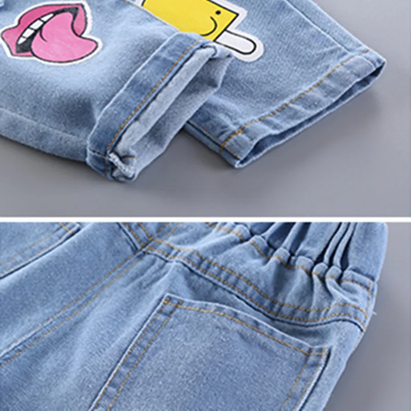 Хит продаж 1 Материал: хлопок 2 рваные и с дырками модный дизайн 3 с эластичной резинкой на талии 3 с мультипликационным принтом «мороженое»; с принтом вишни, модная одежда для девочек; джинсы 3 высококачественный материал и мастерство