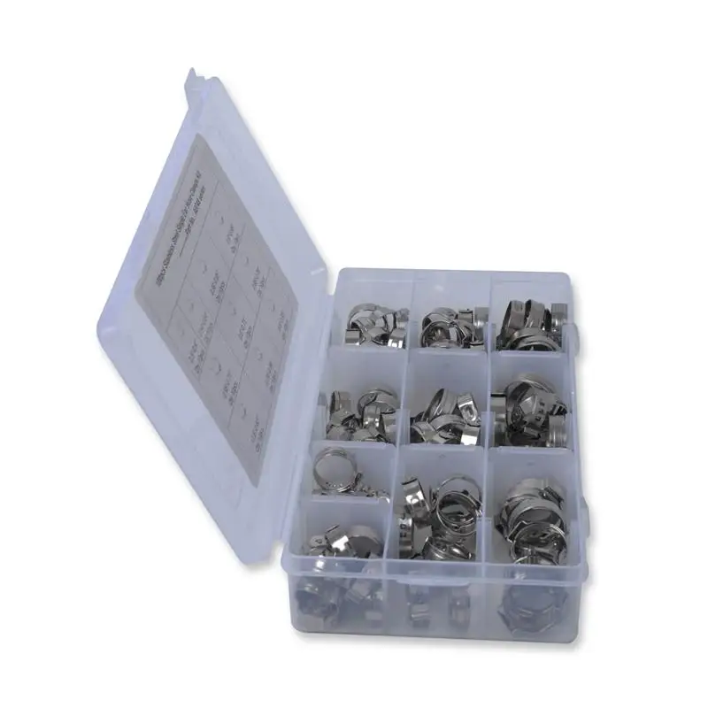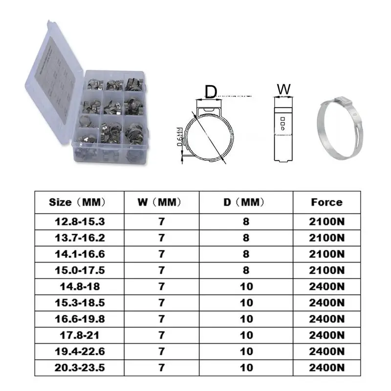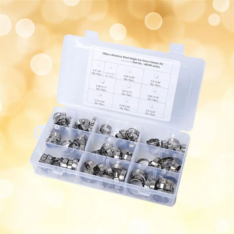 Изделие представляет собой набор из 100 хомутов для шланга с 10 различными спецификациями, которые в основном изготовлены из высококачественной нержавеющей стали для прочного и практичного использования. Он универсален и прост в использовании и обслуживании. Подходит для шланга автомобиля, линии бытовой техники, торгового экспорта, машинного оборудования.