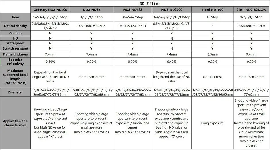 Особенности:Нейтральная плотность может регулироваться от ND2 до ND400.Легко создавать различную нейтральную плотность rОтвод кольца.Нанесите медленную скорость затвора под воздействием сильного солнечного света.Большая диафрагма позволяет легко создавать глубину поля.Подходит для динамического экрана, водопадов, потоков и т. д.Характеристики:Тип: Фейдер ND FliterЦвет: черныйВращение: ДаКласс нейтральной плотности: 2 - 400У нас есть 37 мм, 40,5 мм, 43 мм, 46 мм, 49 мм, 52 мм, 55 мм, 58 мм, 62 мм размер для выбора, И мы отправим тот, который вы выбрали.Посылка включает в себя:Фейдер переменный ND фильтр x1Оптический принцип настройки ND определяет, что он неизбежно будет иметь черный крест.