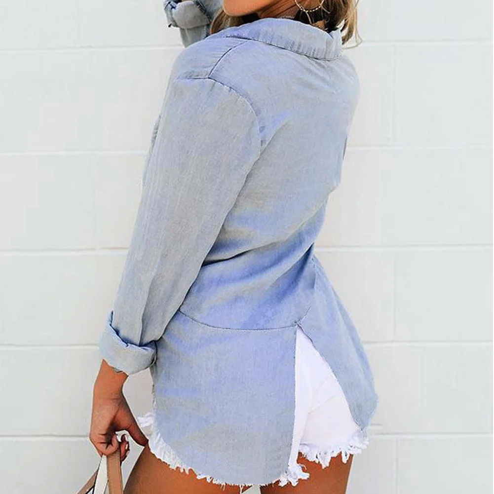 Дизайн с разрезом сзади, вы можете завязать узел спереди, сделать эту рубашку более повседневной и уникальной.