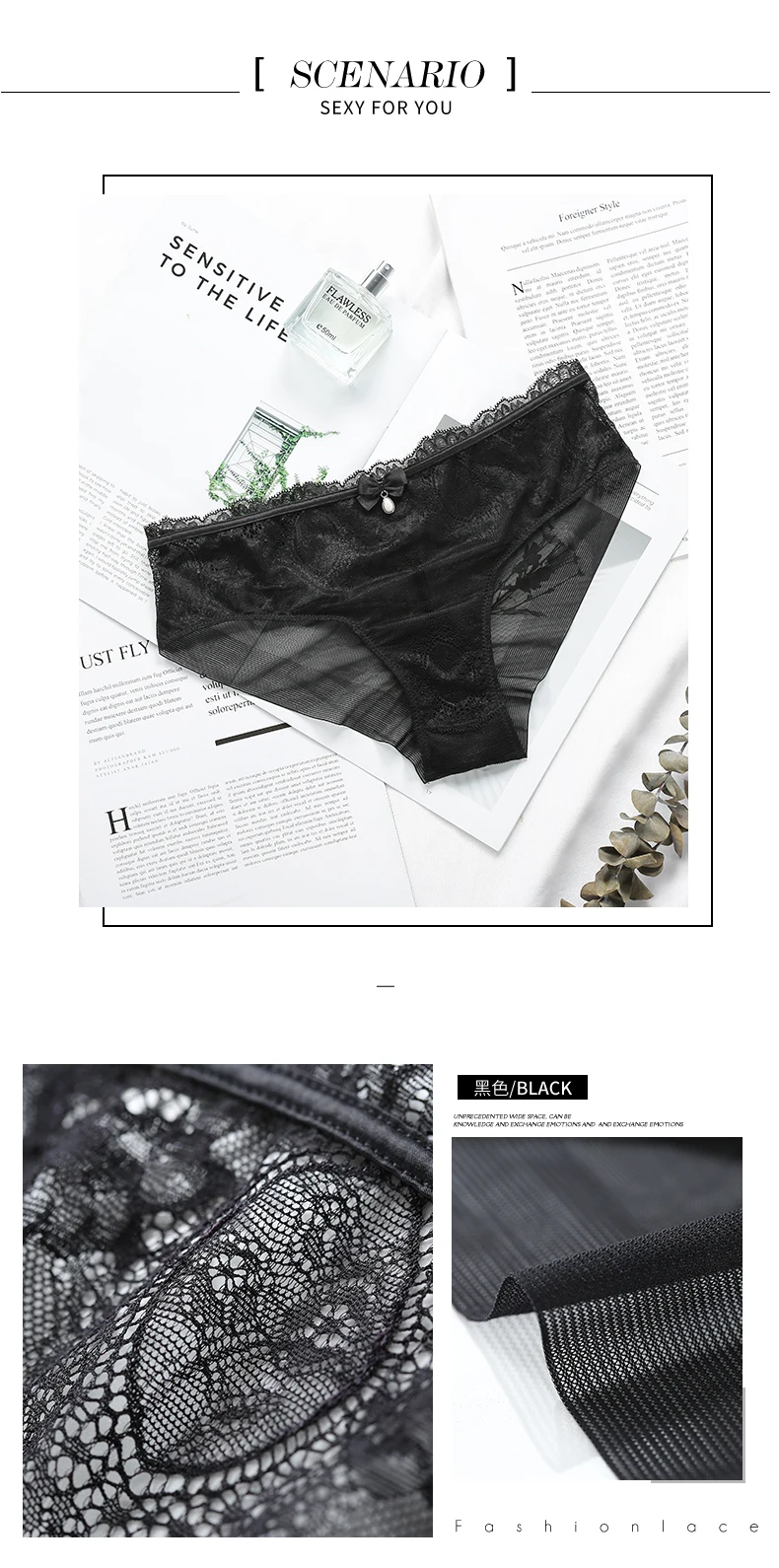 Женские кружевные трусики Lilymoda, 3 шт., сексуальное нижнее белье черного, белого, абрикосового цветовUS $25,26Долларов США/шт