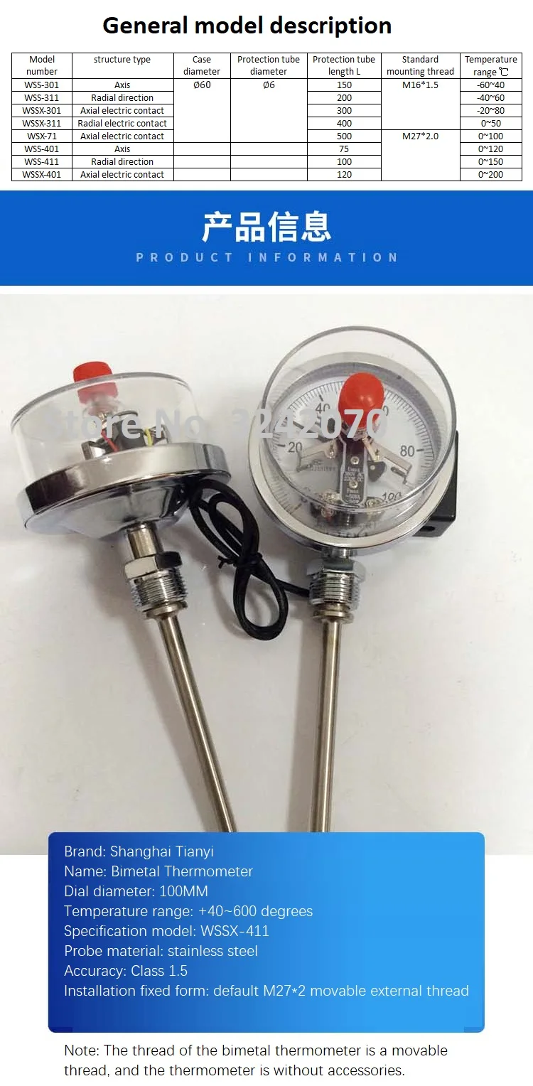 Примечание: нить биметаллического термометра-это подвижная нить, а термометр без аксессуаров.