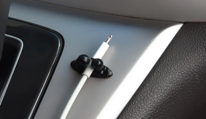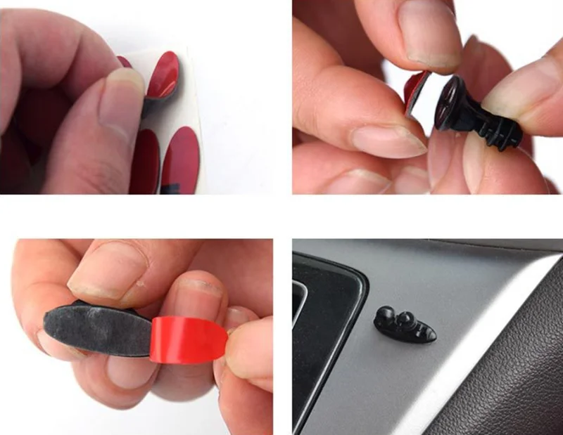 Features: 1.Made of high quality soft ABS material with cute design, it is durable and beautiful 2.8pcs clips of one pack, meet your need for home and car space for clipping USB cable, headphone cable, charger line cable, etc. 3.Keep your cables in check within arm's reach and get your car clean and organized. Never lose your cable 4.3M double-sided adhesive tape to stick on any glossy surface: desks, tables, walls, filing cabinets, furniture, etc. 5.Easy to clip and remove Specifications: Type:Car Adhesive Wire Clip Material:ABS Size:2.6*1*1.5cm/1*0.4*0.6"(L*W*H) Color: Black Note:This is fit for cables within 0.6cm/0.4" thickness. Attention: 1.Please clean the surface of the target area before stick it on. 2.Stick it on and keep your car non-washed within 48 hours to achieve the best adhesiveness. 3.Try to finish the steps one time, do not peel it off from one area and stick on another area to avoid bad adhesiveness. Package list: 8 X cable clip