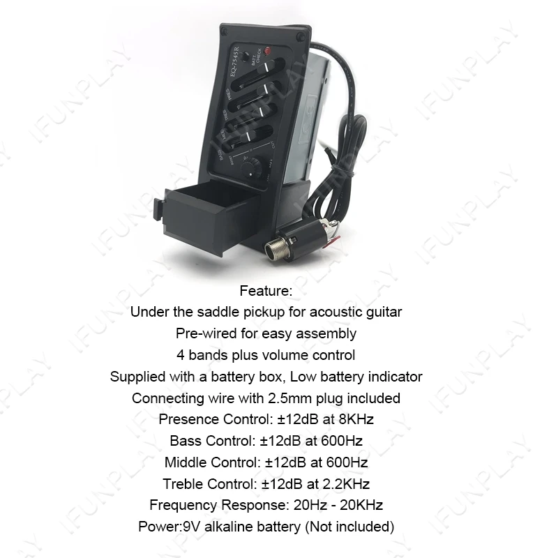 1, как мы знаем, гитарная сторона очень важна для тембра, этот эквалайзер хорош для вашей гитары, потому что вам просто нужно сделать одно отверстие на нижней стороне для выходного гнезда.