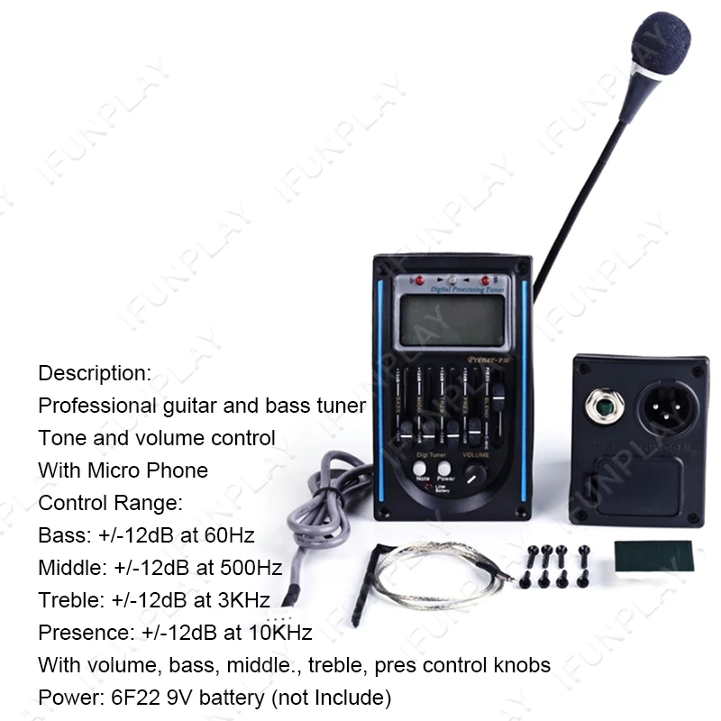 2 диапазона акустической гитары эквалайзер Пикап с тюнером Пикап для фолк Gutiarra черный