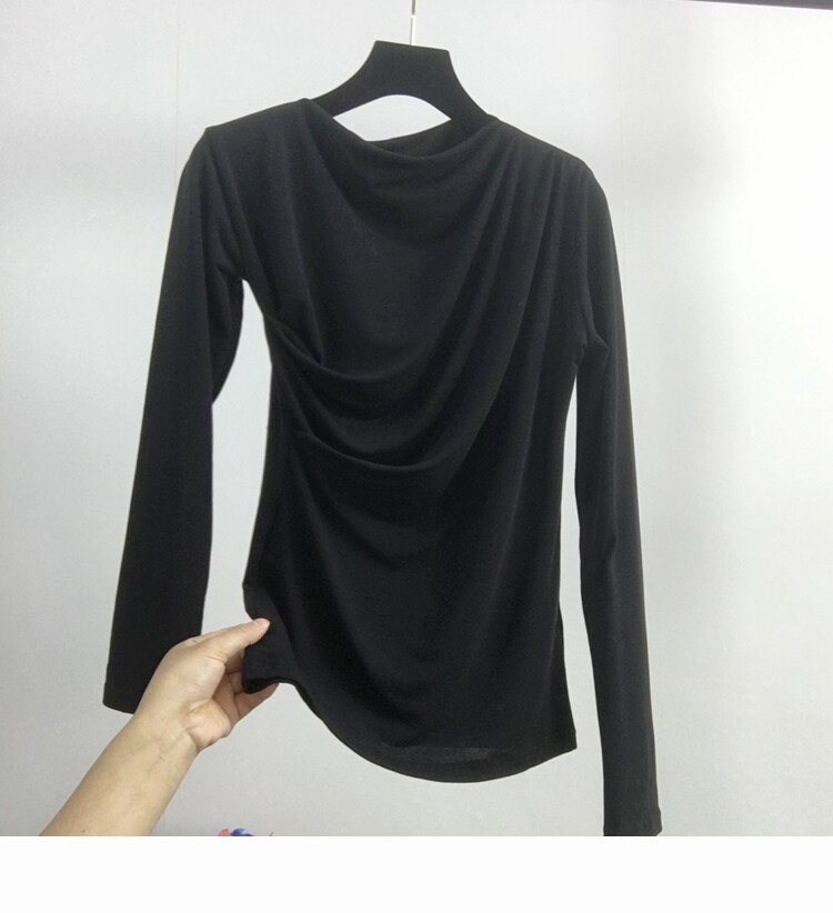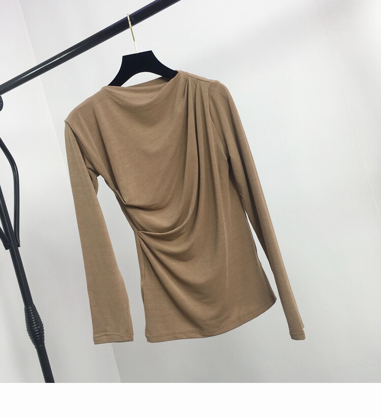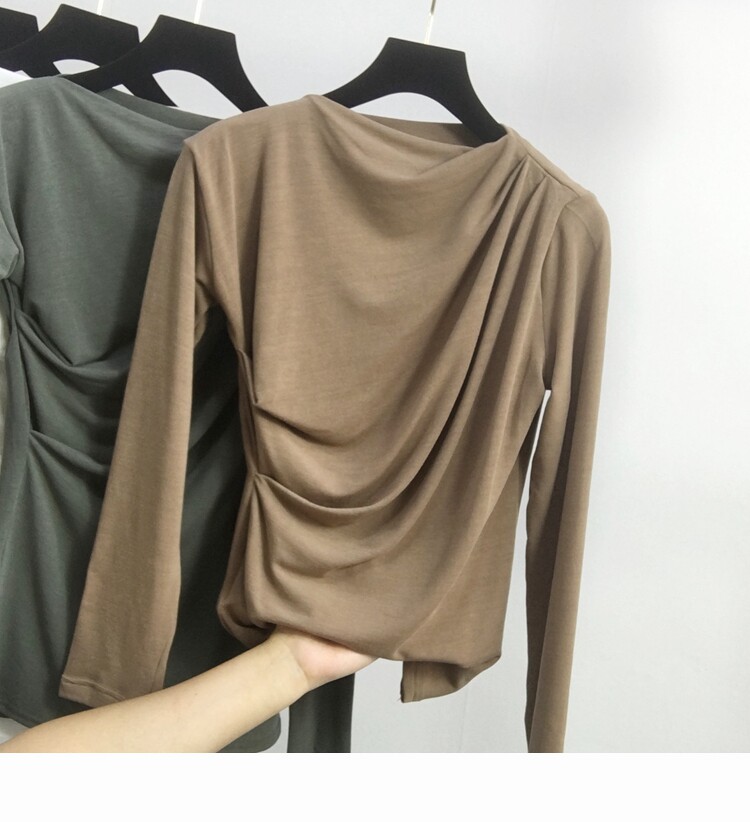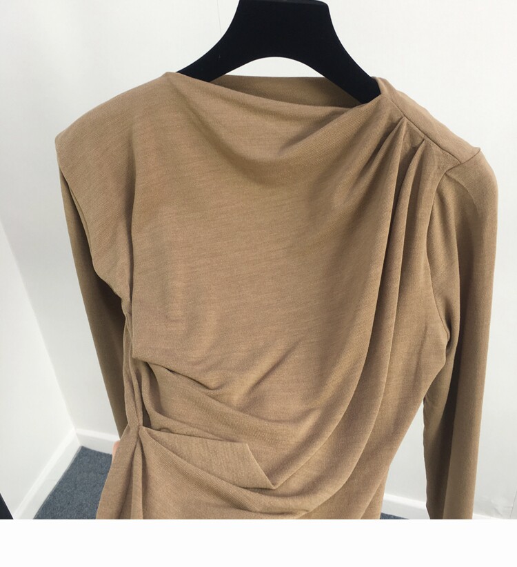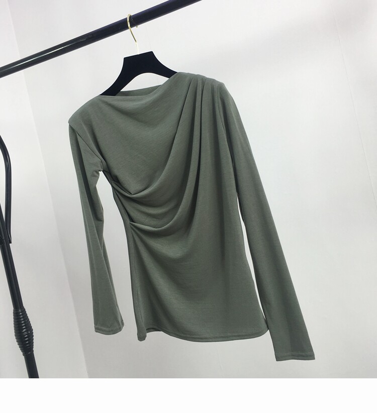 Осенняя Новинка; Повседневная футболка без застежки с длинными рукавами; Плиссированная Футболка с воротником-лодочкой