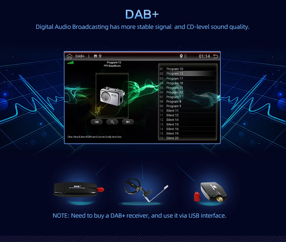 6,2 дюймов Android 10,0 + емкостный Экран + 800*480 + 4 ядра 1,2 ГГц Процессор + DDR3 2 ГБ флэш-памяти + 32 ГБ памяти T3 Cortex A7,GPU:Mali400 Выходная мощность: 4*45 Вт Bluetooth 5,0, радио IC 7786. Усилитель 7388 Рабочая температура-20 ℃-+ 70 ℃ Видео: поддержка 1080P,AUX IN, RCA выход