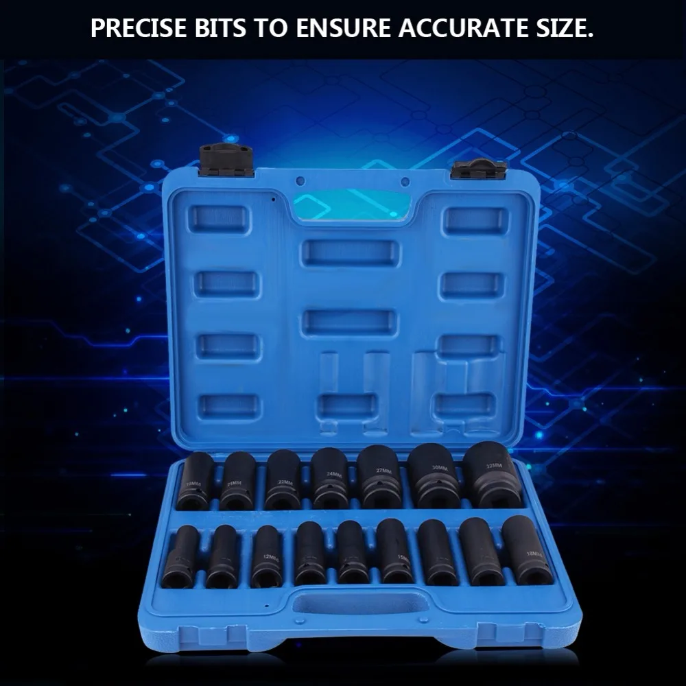 16 шт. 1/2 дюйма воздушный шестигранный набор гнезд ремонтный набор инструментов 10 мм-32 мм