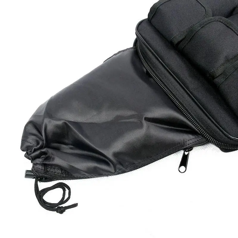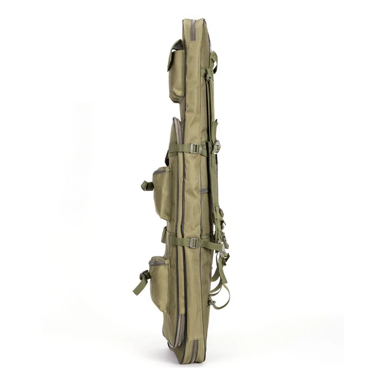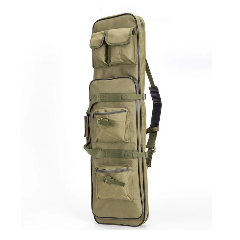 Изготовлен из водонепроницаемого нейлонового материала высокой плотности Двойного назначения, с подвесным ремнем на два плеча и ремнем для переноски, а также с ремнем на плечо 2 основных отделения, 4 небольших кармана для журналов или других аксессуаров, 1 большое отделение на молнии сзади. С удобным мягким ремнем на два плеча, ремнем для переноски и ремнем для фиксации Большой основной встроенный удлиненный чехол используется для хранения винтовки, внешний отсек может хранить пистолеты или пистолеты Мягкая Толстая Подушка для максимальной защиты и удобства при ношении на спине Идеально подходит для охоты и любых военных целей