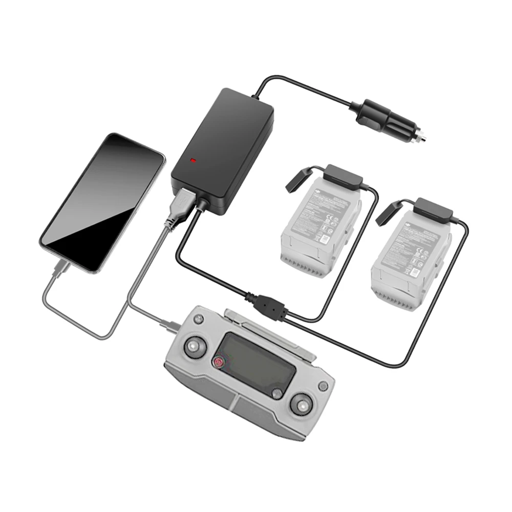 Параметры продукта: Название продукта: автомобильное зарядное устройство Mavic 2 Входное напряжение: 12-14 В/10 А (макс.) Выход USB: 5 В/2 А Выходное напряжение батареи: 17,6 в/3.0A * 2 Одиночное Выходное напряжение: 17,6 в/3,8 A Время зарядки: около 60 минут для полной зарядки одной батареи, около 80 минут для полной зарядки двух батарей Вес изделия: 194 г Посылка Вес: 250 г Размер упаковки: 16,8*11,6*4,4 см Список поставки: 1 * Автомобильное зарядное устройство, не включая другие