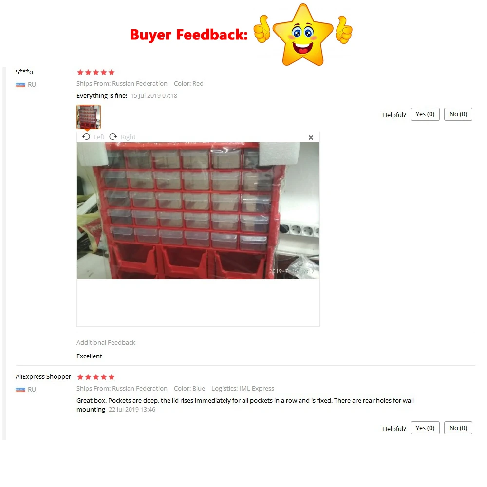 NEWACALOX 39 ящик большой Органайзер аппаратные средства и ремесло шкаф бытовой ящик для инструментов пластиковые маленькие части хранения мульти шкатулка Спецификация: Общий размер: 14,96 Вт x 6,3 Л x 18,5 ч дюймов/38Wx16Lx47H см Размер ящика: 5,5x2,17x1,38 дюймов/14x5,5x3,5 см Размер большого ящика: 6,3x3,94x2,76 дюймов/16x10x7 см Цвет: красный Материал оправы: пластик Материал: полипропилен Ключевые слова: чехол с выдвижными ящиками Ящик: 39 Шт (30 шт маленький + 9 шт большой) Особенности: 1. Прочная, ударопрочная рамка из полистирола с опорой для дополнительной прочности, внешний размер 14,96 Вт x 6,3 Л x 18,5 ч дюймов, легкий и очень прочный. 2. Содержит 30 маленьких и 9 открытых больших красных ящиков для организации и защиты мелких предметов, каждый маленький ящик упакован с бесплатными ласточчатыми разделителями для индивидуальных вариантов хранения. 3. Просвечивающие ящики для максимальной универсальности и легкой идентификации содержимого, специально разработанные с без проливания вкладки стопов и легко тяните ребристые ручки. 4. Легко крепится к стене или стоит на скамейке или столешнице, идеально подходит для рукоделия, бисера, оборудования, рыбалки, инструментов и предметов для хобби. Посылка включает в себя: 1 шт. ящик для инструментов (Ящик: 39 Шт (30 шт маленький + 9 шт большой)