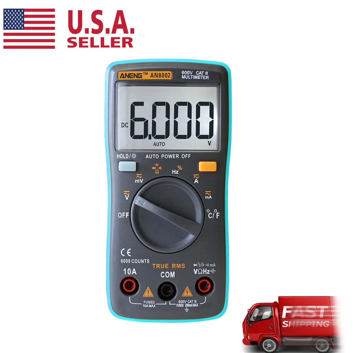 AN8002 Цифровой мультиметр 6000 отсчетов Подсветка переменного тока/постоянного тока Амперметр Вольтметр Ом Портативный метр зажимы типа «крокодил» (Тесты линии (синий)