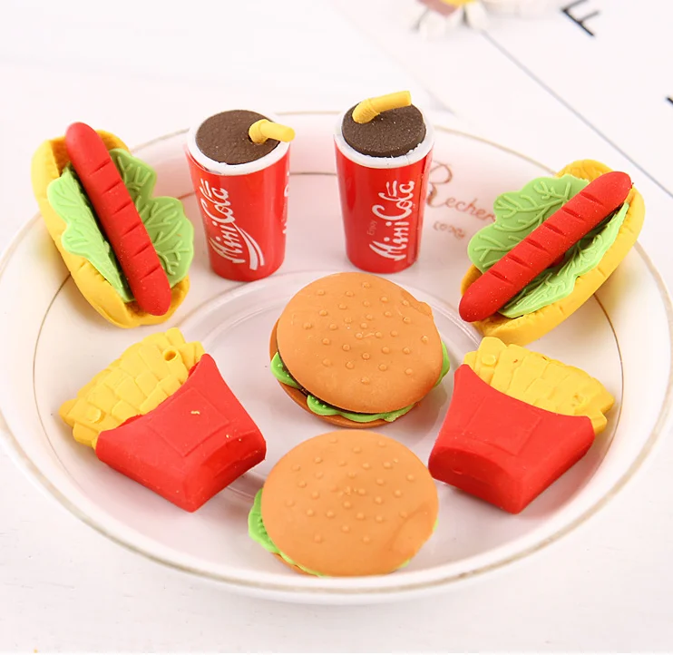 1 шт. милый ластик Kawaii еда картофель фри гамбургер хот-дог ластик офисная резиновая коррекция школьные принадлежности Корея канцтовары