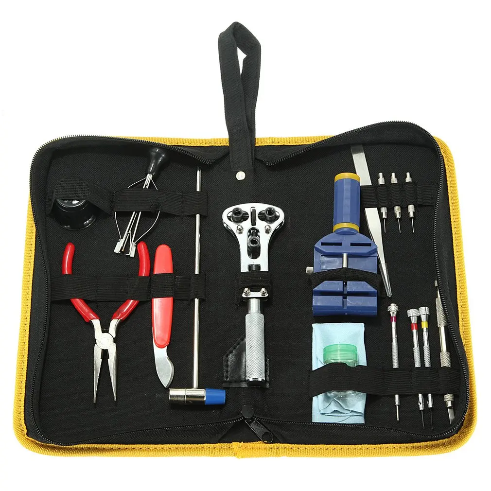 Многие инструменты входят в комплект, чтобы выполнять наиболее распространенные задачи, такие как регулировка ремешка, открытие часов, изменение батарейки для часов, меняющиеся часы прокладки, Регулировка часов и многое другое.