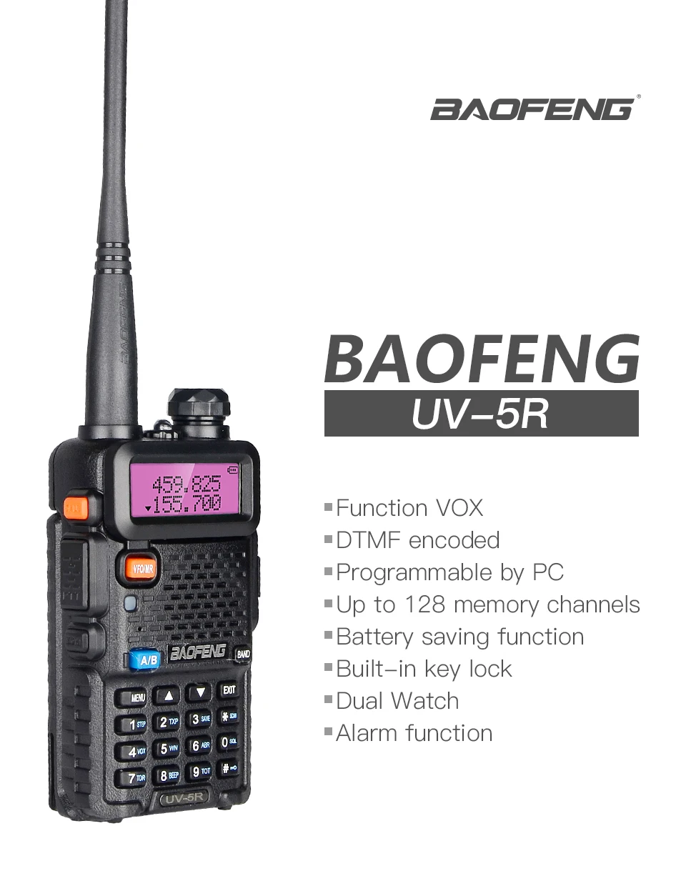 1. BaoFeng UV-5R-это компактный ручной трансивер, обеспечивающий 4 Вт в диапазоне частот 136- 174 МГц и 400-480 МГц.