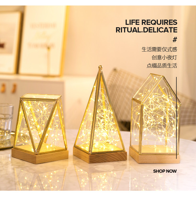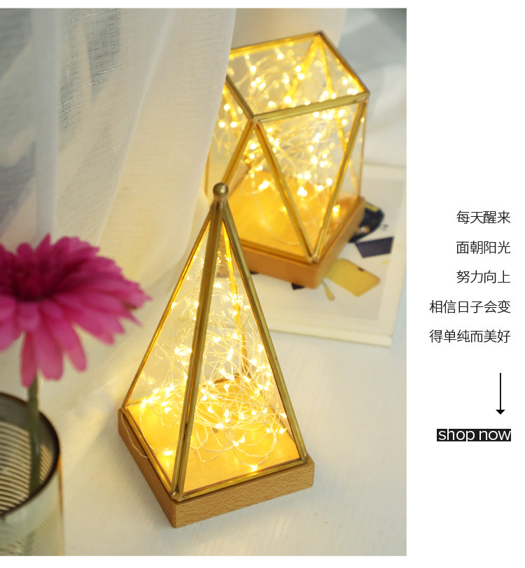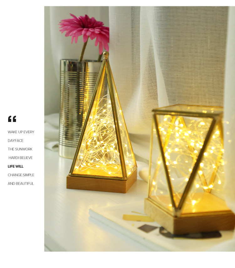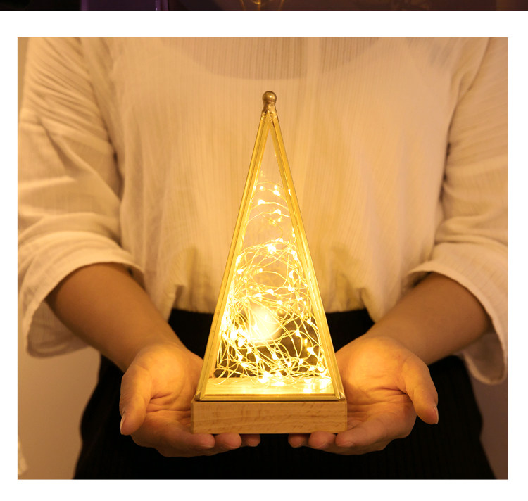 ------------Описание------------ Экологически чистый и мягкий на глазах. Широкое применение, идеально подходит для спальни, коридора, вечеринки, свадьбы, праздничного украшения и т. д. Особенности Прямоугольный дизайн, простой и модный Не только украшение, можно также использовать в качестве лампы для освещения Идеальное сочетание искусства и света Цвет излучения: теплый белый свет Два стиля: пирамиды и полигоны Материал изделия: высокое покрытие из боросиликатного стекла и основание из твердой древесины Напряжение: 4,5 В Питание от 3 x AAA батарея (не включена) Содержимое упаковки 1 x светодиодный ночник
