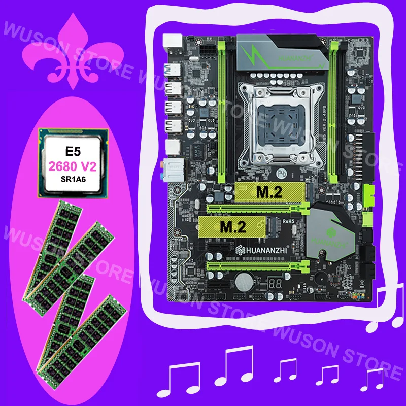 Супер материнская плата HUANANZHI X79 с двумя слотами M.2 + Xeon E5 2680 V2 CPU + 4*16G 1600 DDR3 RECC+ Кулер-адаптер + кабель SATA + металлический задний щит + диск драйвера + Руководство пользователя