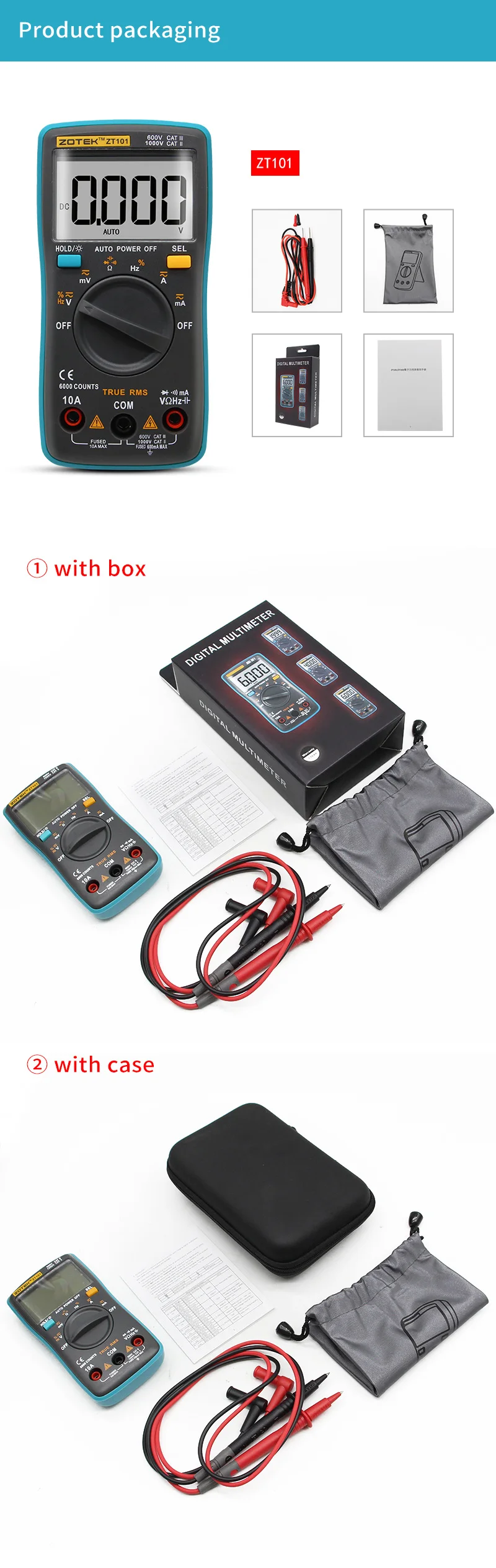 RM101ZOYI ZT101Цифровой мультиметр с подсветкой AC/DC Амперметр 6000 отсчетов AC/DC Амперметр Вольтметр Ом портативный измеритель напряжения
