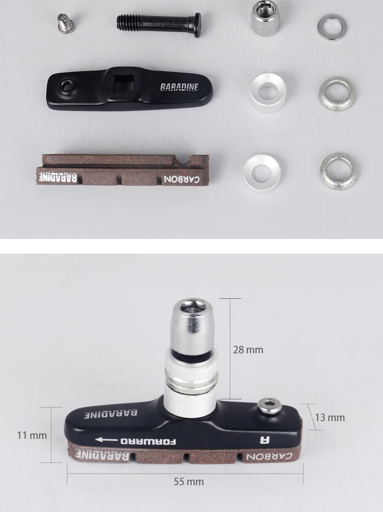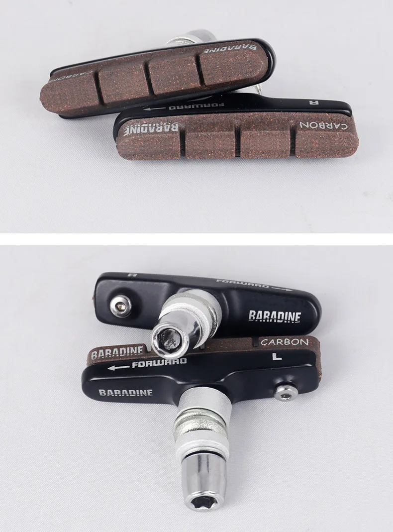 Колодки изготовлены из пробкового и углеродного компонентов, прочные в использовании, заменяемые колодки; Отсутствие асбеста, фталатов или других тяжелых металлических элементов, сведение к минимуму износа обода; Дизайн соответствует контуру обода для повышения мощности торможения; высокая производительность остановки питания в влажных и сухих условиях, низкий уровень шума; Обувь изготовлена из алюминиевого сплава, Сверхлегкий вес; Использовать d только для обода колеса углерода