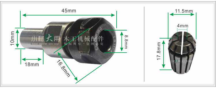 Тип Er: внутреннее отверстие оснащено цангой ER 11. После того, как бит вставлен, затяните внешнюю гайку и используйте обычное сверло. Диаметр отверстия может быть выбран как 1 ~ 7 мм, что более подходит для сверления небольших отверстий
