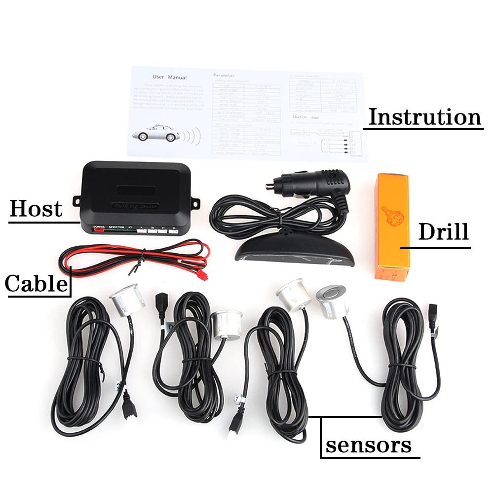 * 4 датчика с 2,5 м свинца для задней части, левая и правая индикация препятствий