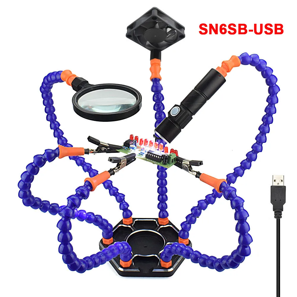 Держатель паяльника NEWACALOX Third Pana Hand с 6 гибкими рукоятками USB бесщеточный DC вентилятор фонарь Лупа сварочная станция Подставка инструмент