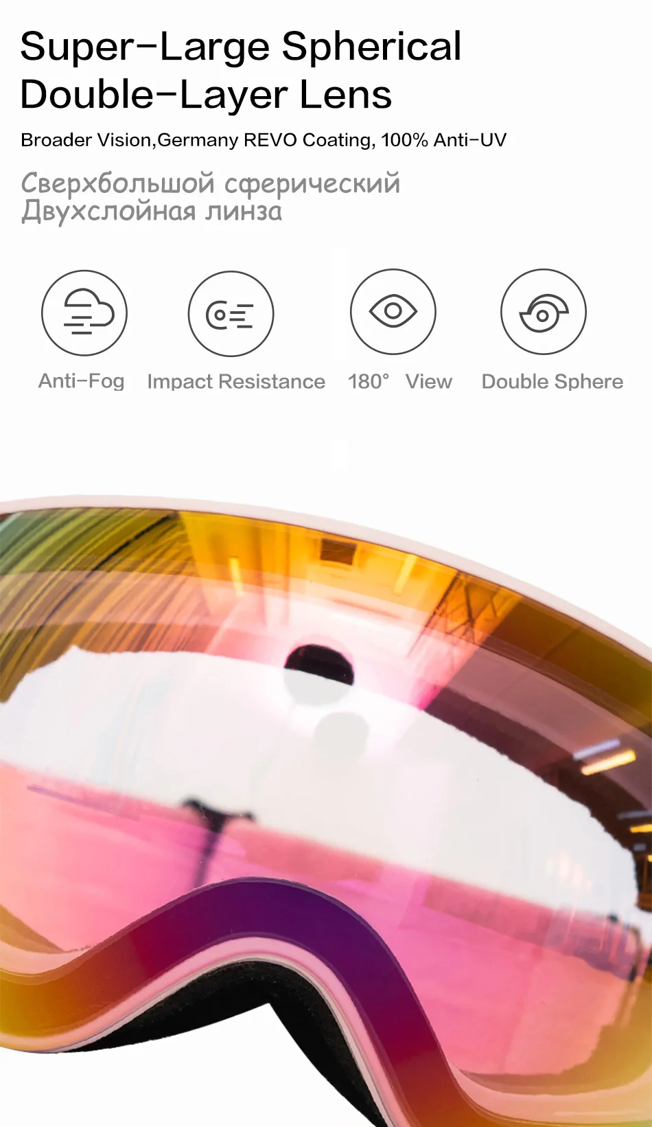 Отличная защита от запотевания позволяет избежать размытия зрения и сделать катание на лыжах более безопасным