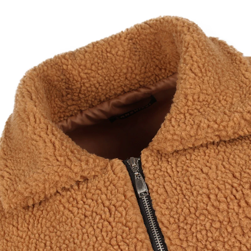 Эта куртка изготовлена из искусственного меха, который очень шелковистый и мягкий, с боковыми карманами и застёжкой-молнией, чтобы она выглядела крутой. Длинная свободная посадка идеально подходит для наслоения свитера.