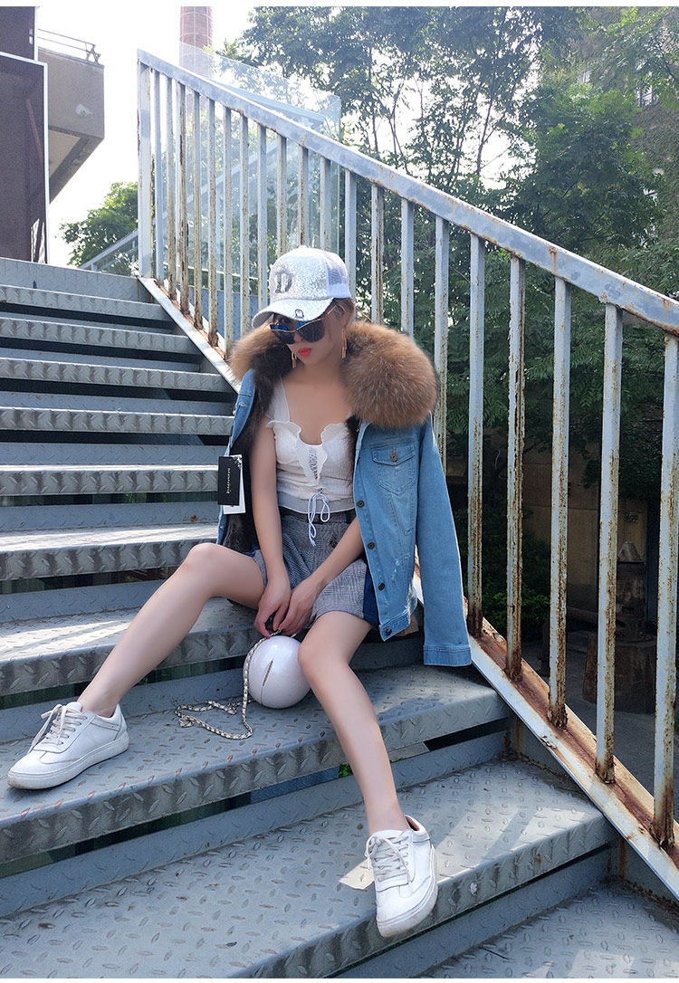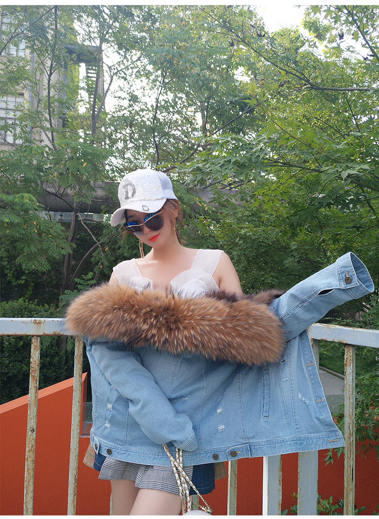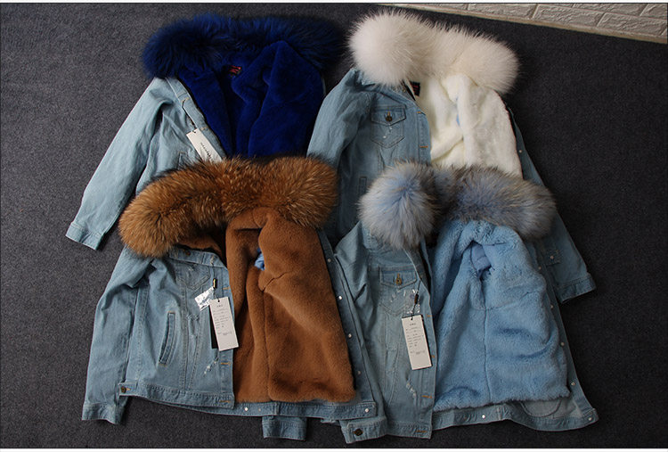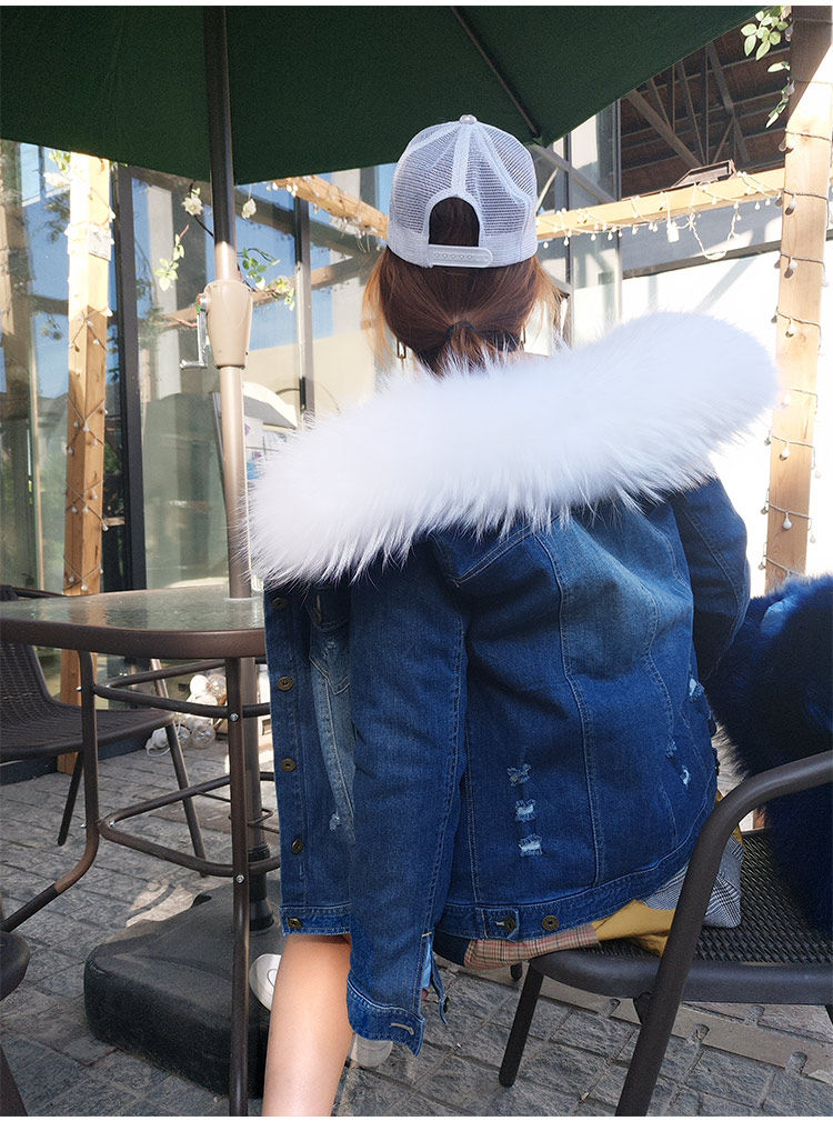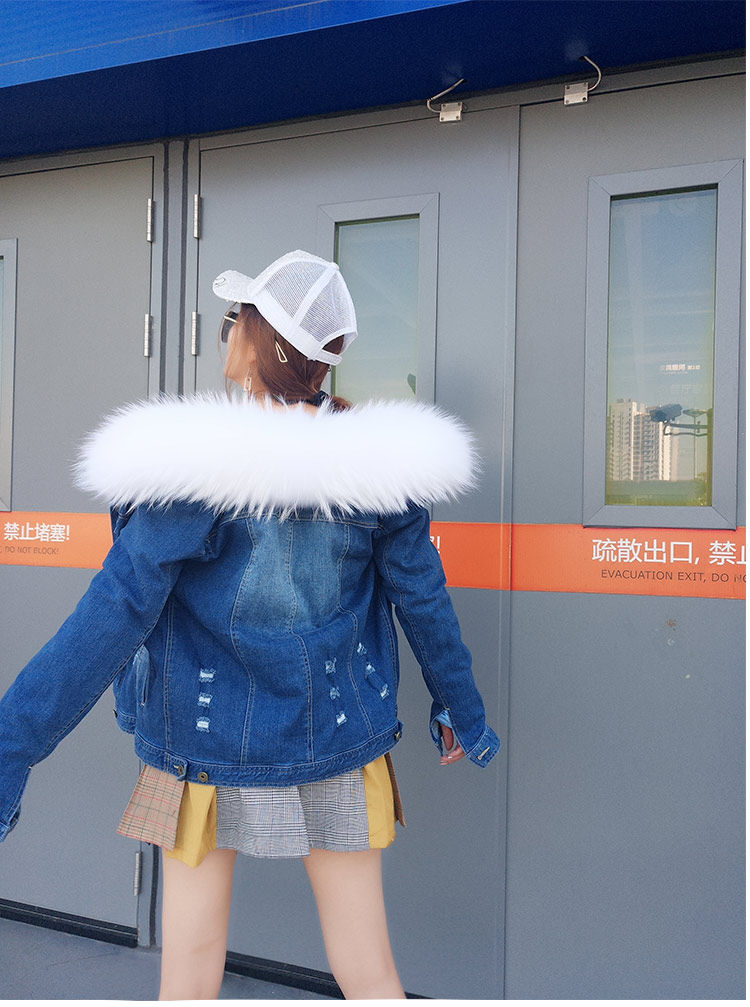 Воротник: воротник из натурального меха енота + теплая Толстая меховая подкладка + джинсовая оболочка