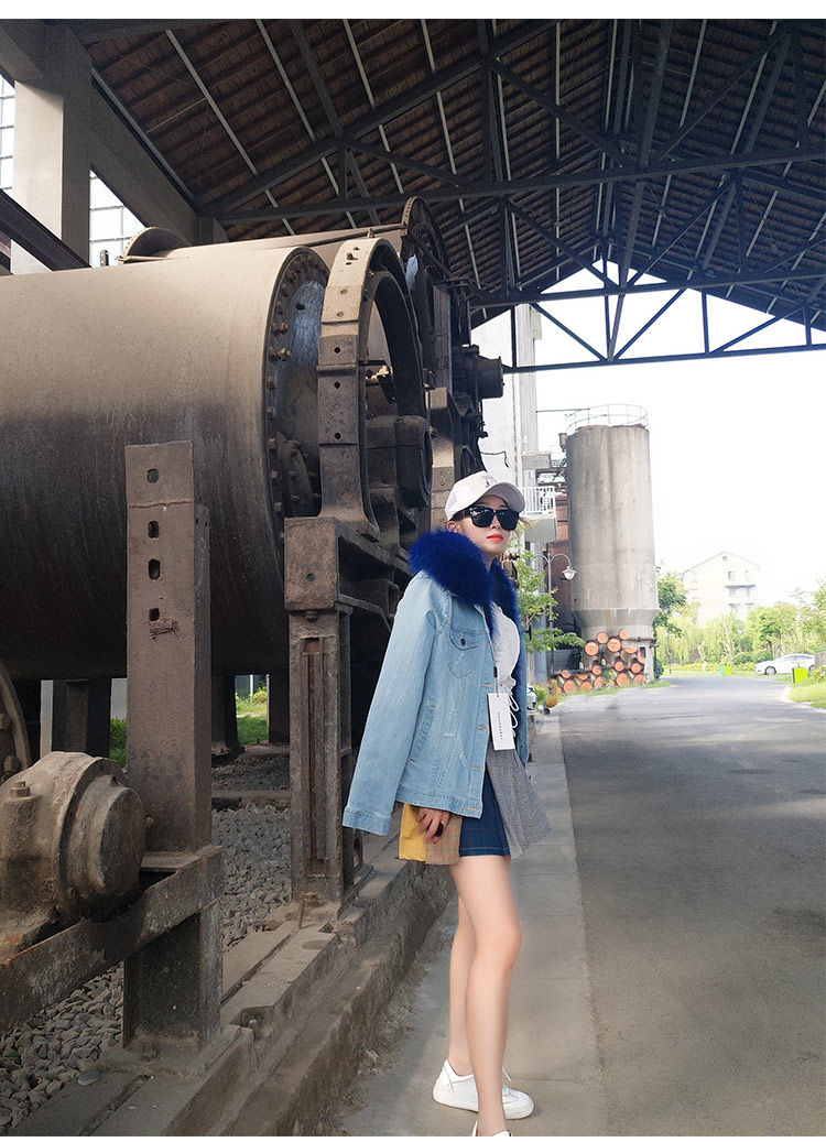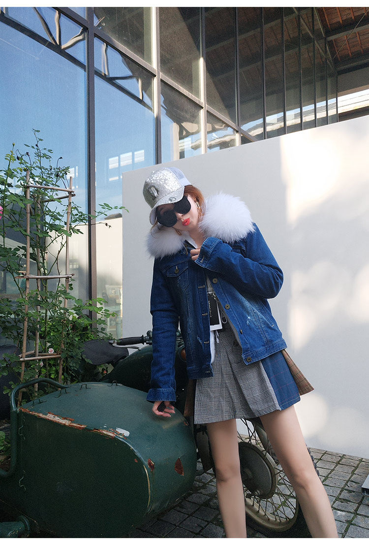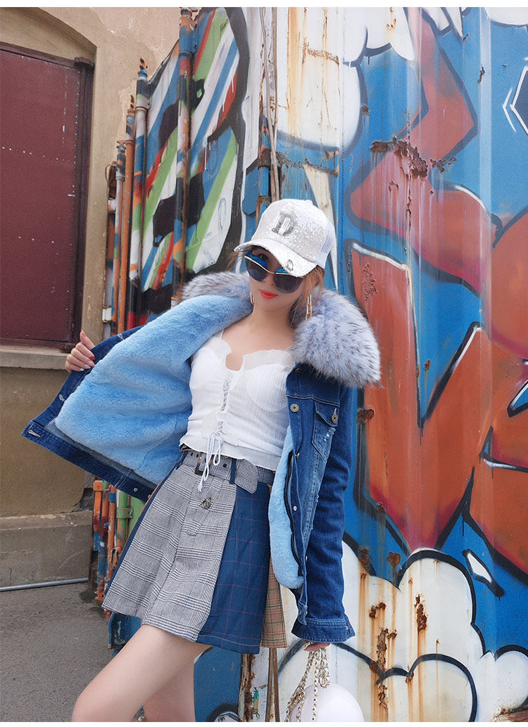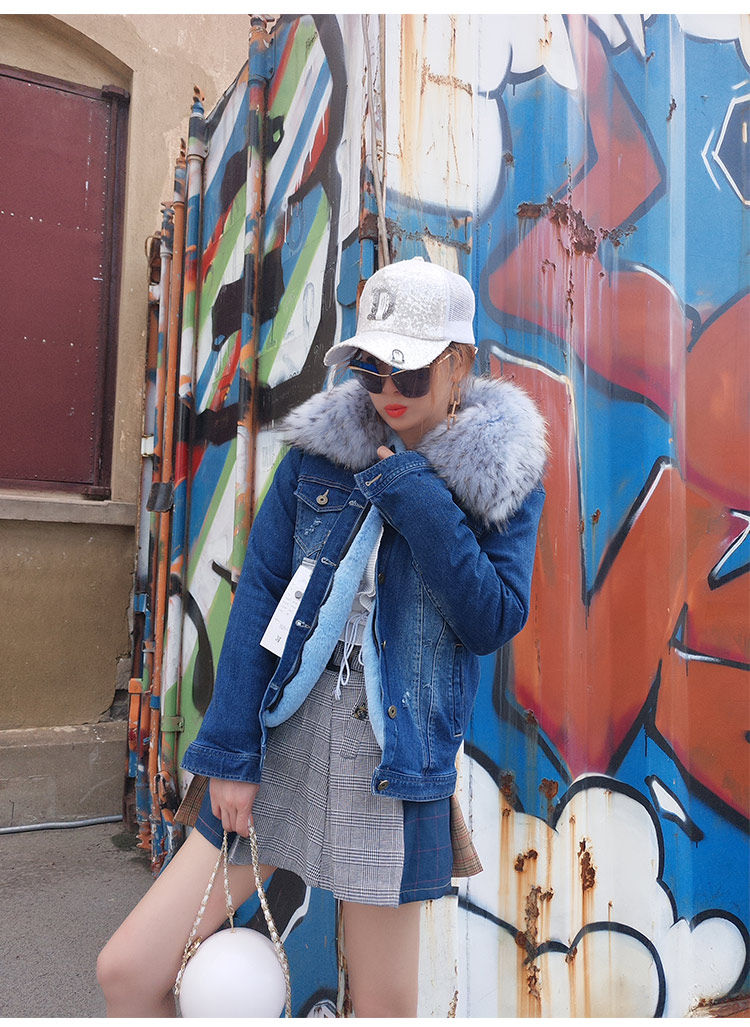 Воротник: воротник из натурального меха енота + теплая Толстая меховая подкладка + джинсовая оболочка