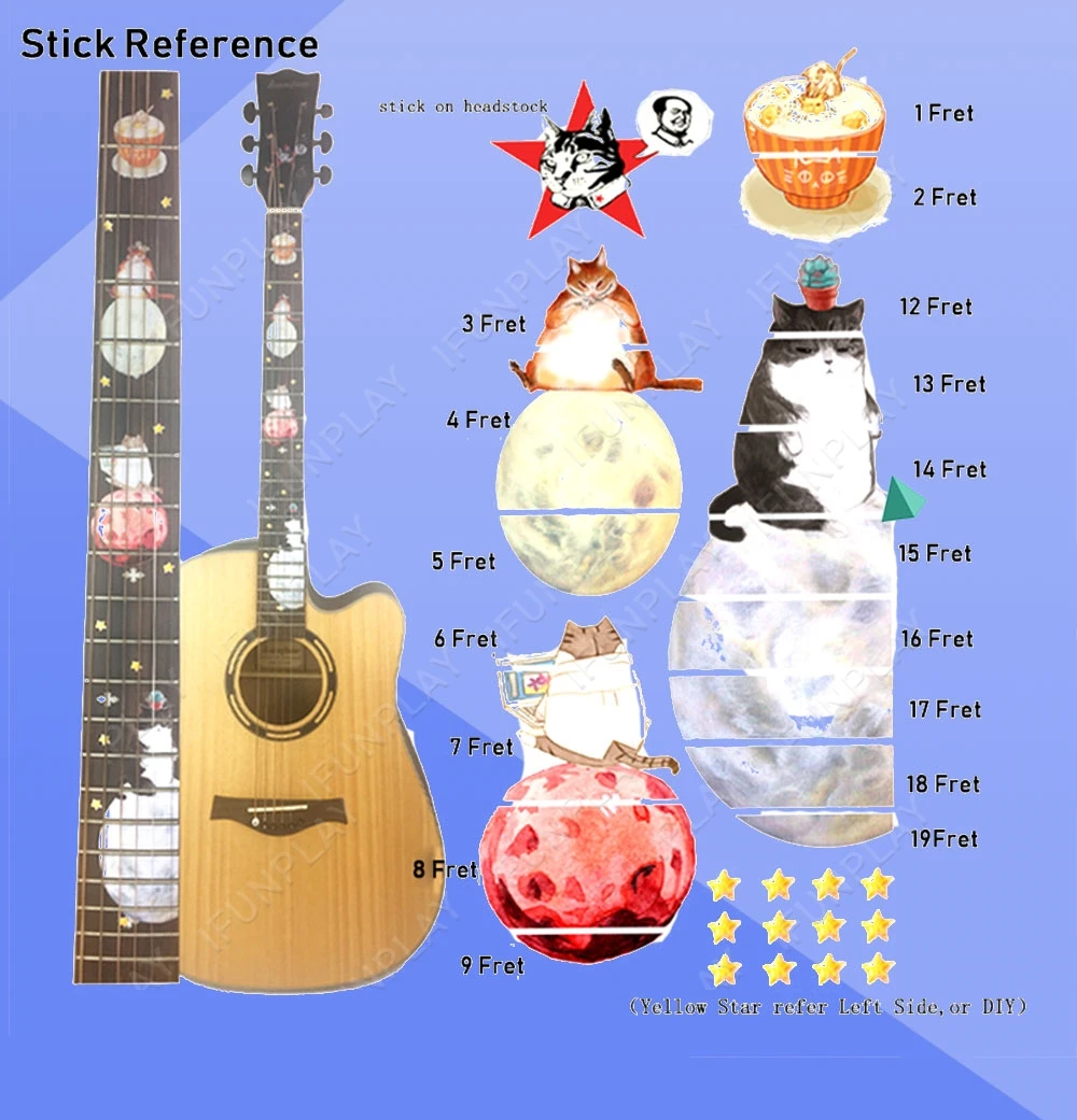 Наклейки для электрогитары DIY, наклейки в космическом роуминге для электрогитары Meow star People, стикеры s для акустической электрогитары ra