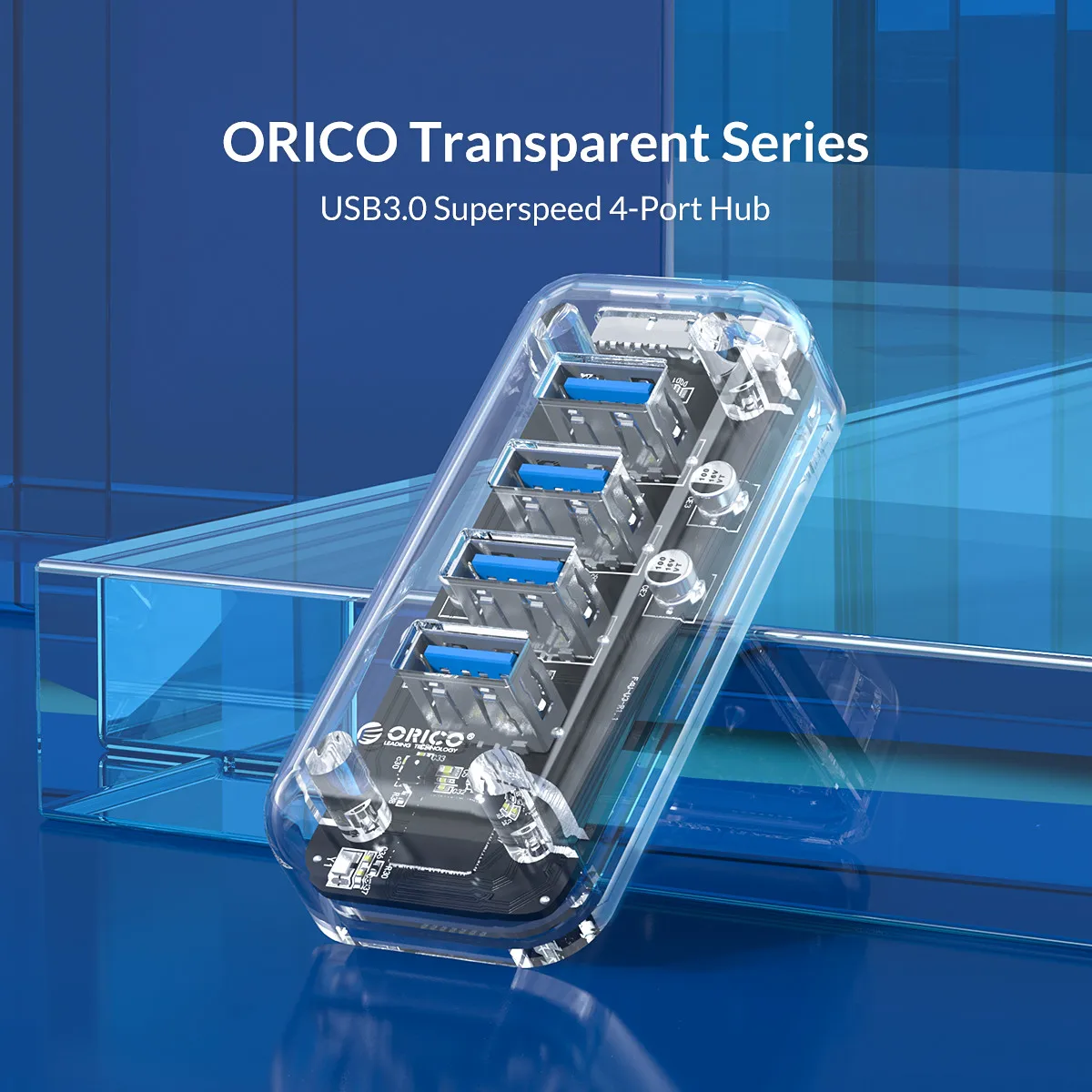 ORICO USB3.0 Transparent HUB добавил входной порт micro USB, чтобы включить его в питание концентратора, чтобы sup порт потребности в питании жестких дисков и USB вещей, которые требуют больше питания. Два отдельных интерфейса питания обеспечивают более стабильную передачу и подключение мобильных устройств большой емкости. Для питания можно использовать любой кабель Micro USB (не входит в комплект).