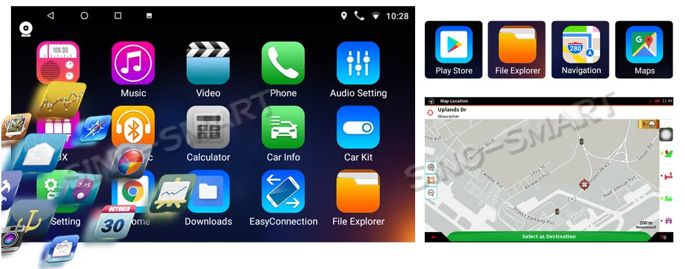 1. Магазин Google Play (загрузка миллионов приложений из магазина google play и установка), встроенный GPS (вы можете использовать онлайн-карту google или другое популярное онлайн/автономное навигационное приложение)