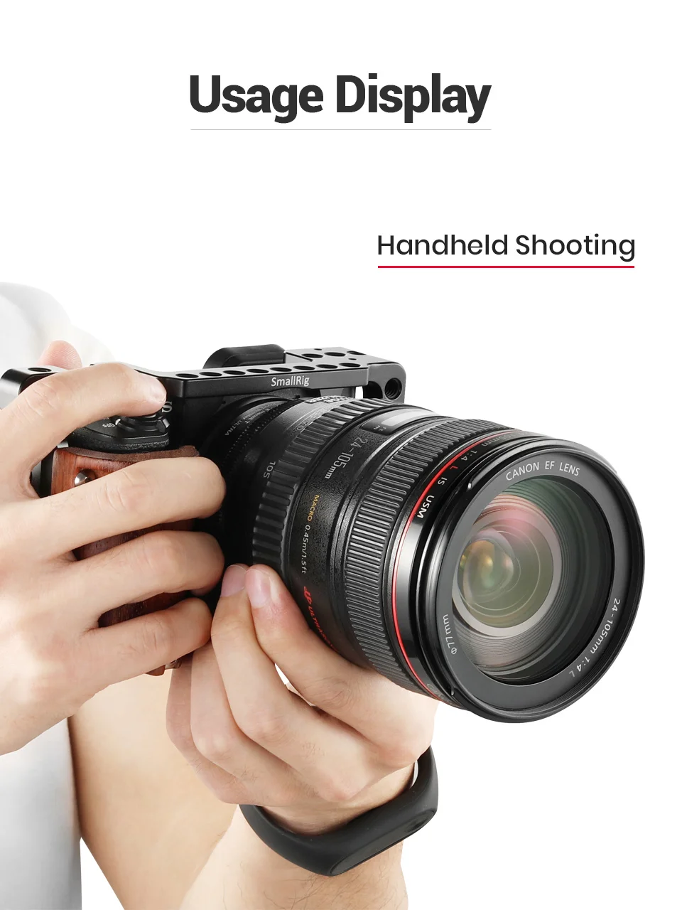 Клетка SmallRig с деревянной ручкой 2082 предназначена исключительно для Sony A6000/A6300 на рынке, чтобы раскрыть максимальный потенциал камеры. В комплект входитКлетка 1661ИДеревянная рукоятка 1970. Он предлагает множество возможностей для дополнительного крепления в соответствии с вашими потребностями во время съемки.