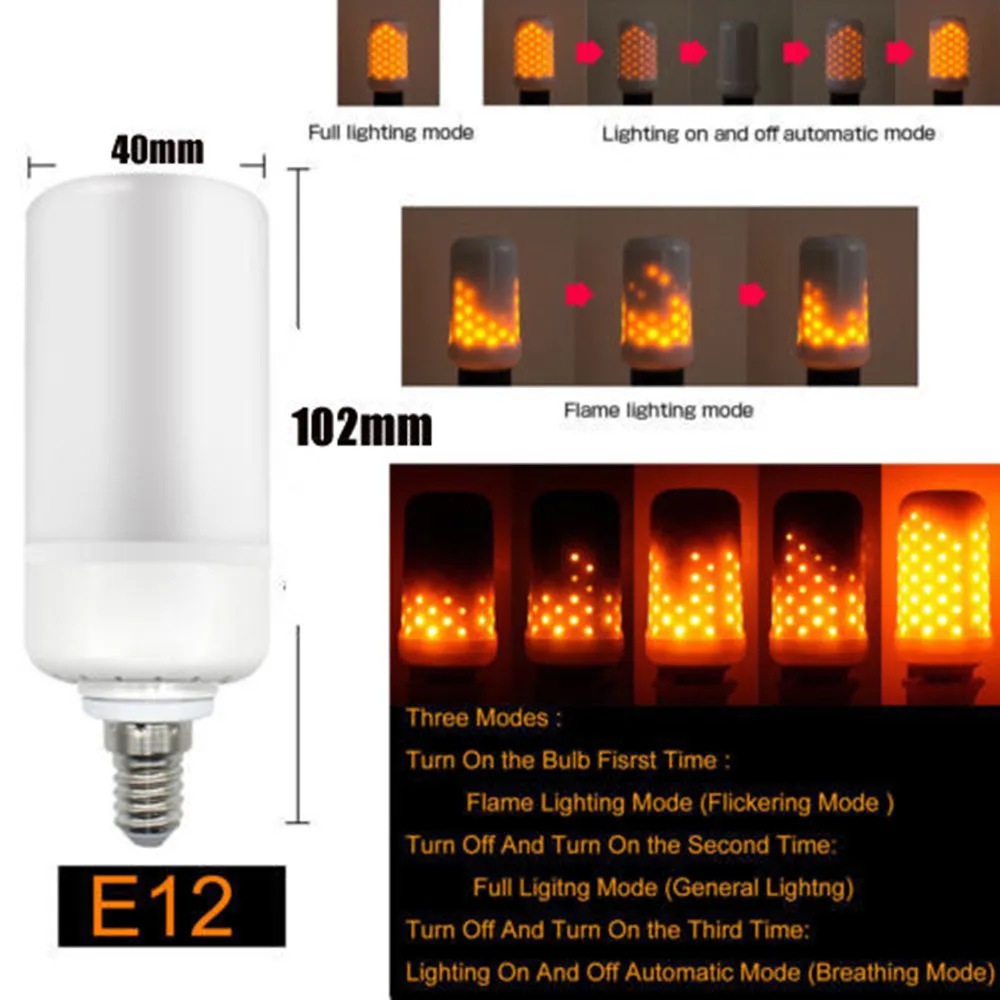 Светодиодная огнеупорная лампа с эффектом пламени изготовлена из высококачественного абс + поликарбоната, имеет 66 листов 2835SMD, что обеспечивает вам высокую яркость света.